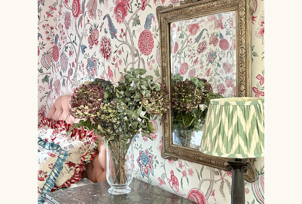 Monkey Palampore Wallpaper in warm red grey blue and grey green Interior Design by Tamara Wakeford by alison | Feb 26, 2025