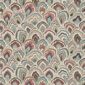 Ebru cream red green and blue