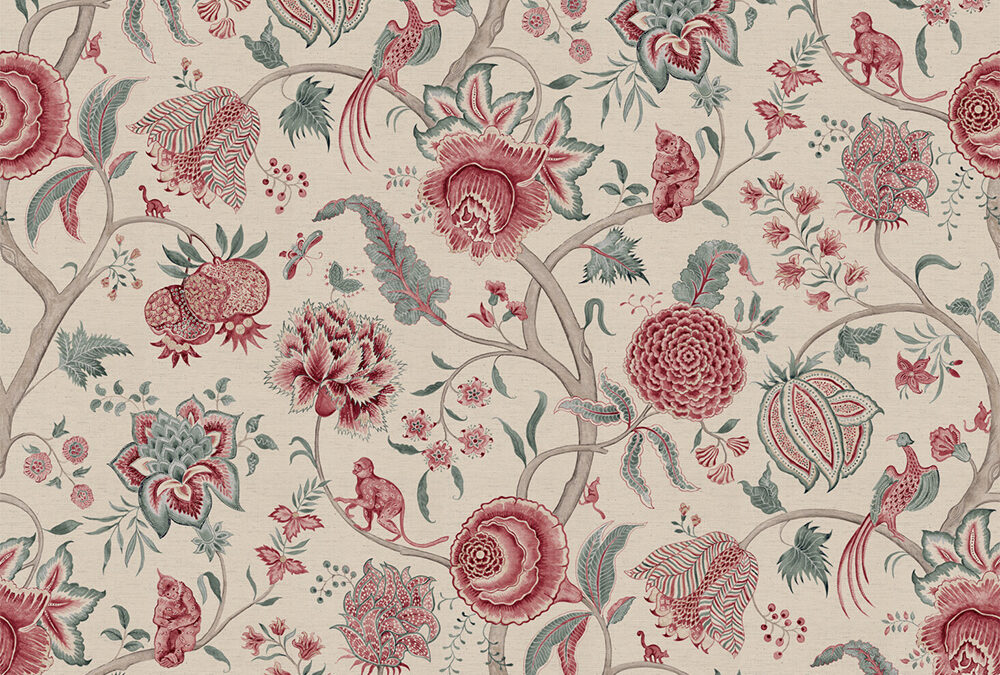 Monkey Palampore warm red and duck egg natural