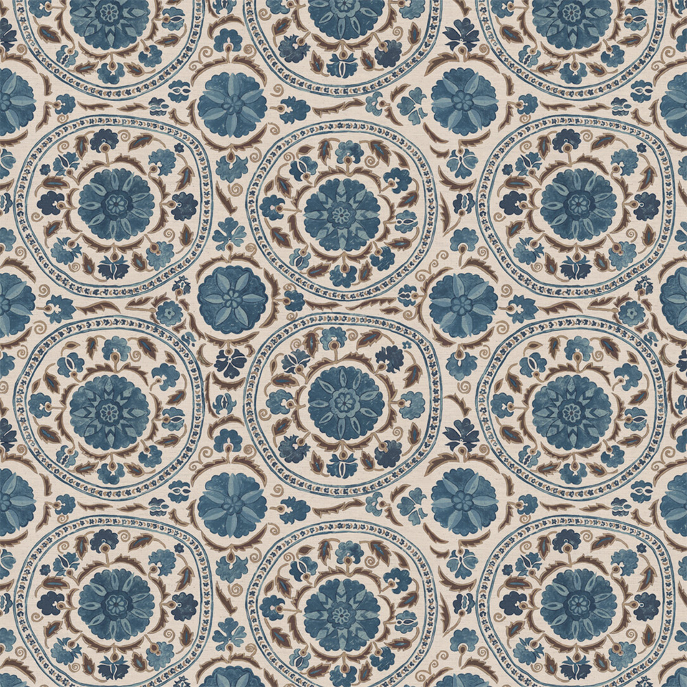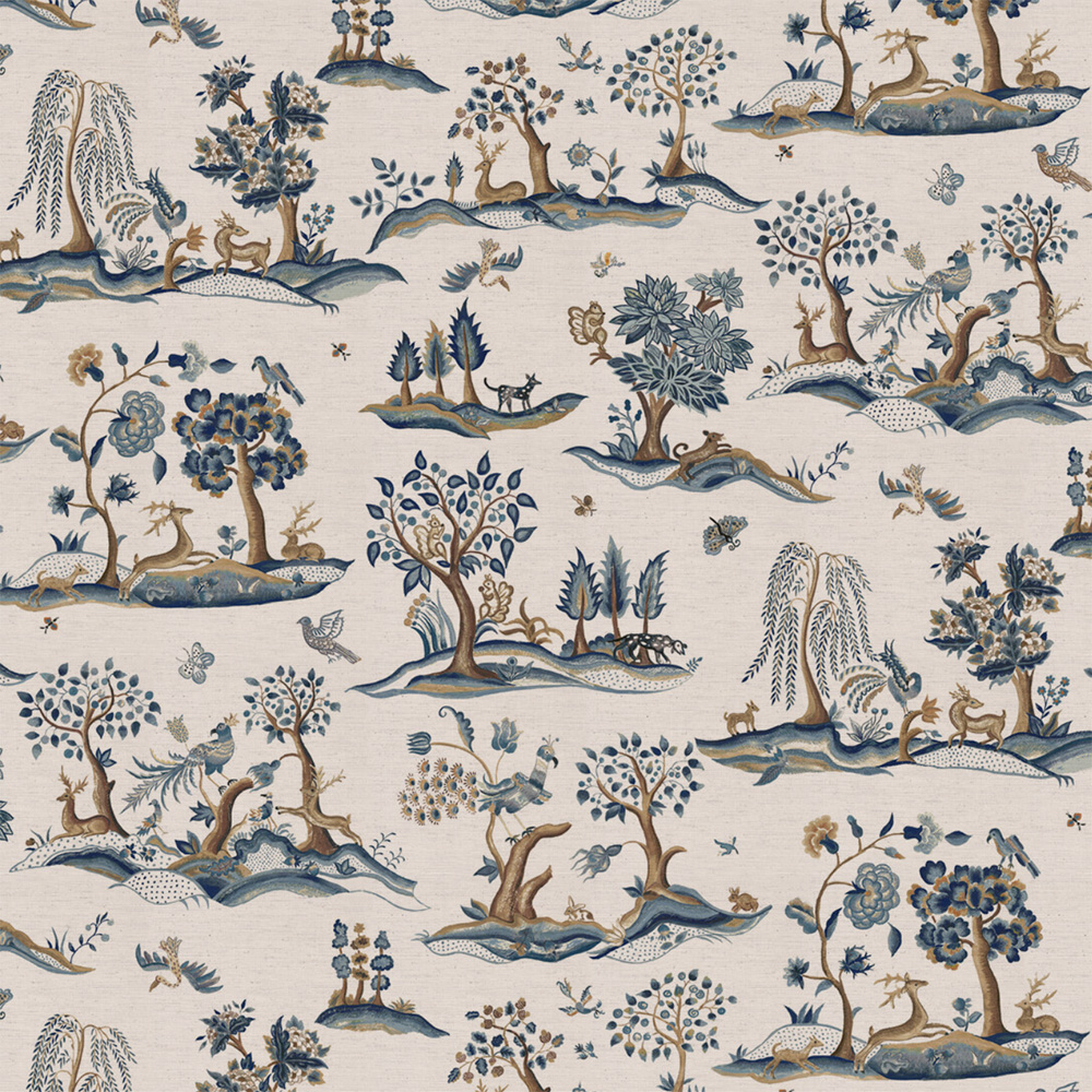 Monkey Palampore Natural Luxury Linen – blue and chocolate
