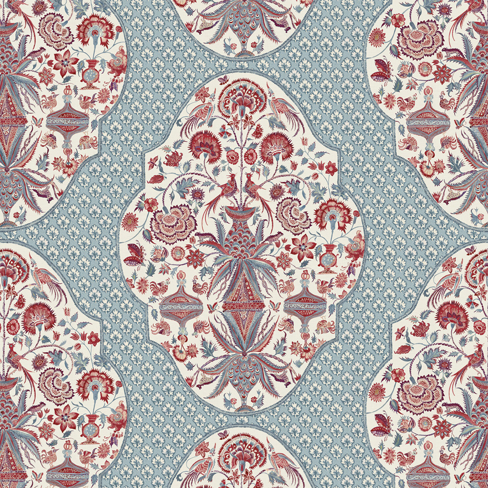This statement design was inspired by an antique patchwork using a Palampore. Â I have painted this design in watercolour, using a resist technique for the intricate details inside the design. Â It is named after a truly wonderful boy, who like so many have come to seek refuge in our country. Â Zakhar means “God has remembered.” Â My designs are inspired by history and the world and I like to think that they show the great harmony that could and should happen when races and cultures come together with love.