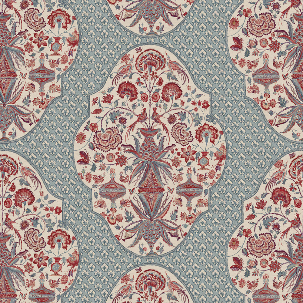 This statement design was inspired by an antique patchwork using a Palampore. Â I have painted this design in watercolour, using a resist technique for the intricate details inside the design. Â It is named after a truly wonderful boy, who like so many have come to seek refuge in our country. Â Zakhar means “God has remembered.” Â My designs are inspired by history and the world and I like to think that they show the great harmony that could and should happen when races and cultures come together with love. SO THAT THE PLACEMENT WORKS FOR YOUR PROJECT LET ME KNOW THE POSITION YOU WOULD LIKE THE DESIGN TO START FROM.